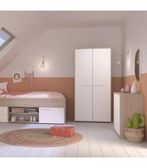 Maisons Du Monde Armoires Enfant Dressing 2 Portes Battantes Blanc Cannage En Rotin Beige