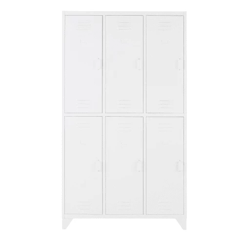 Tendance et tout en métal, le dressing vestiaire indus 6 portes en métal blanc SUNSET s’offre un petit air d’armoire de pensionnat. On adore son design épuré qui s’intégrera facilement dans tous les types de déco. Avec ses nombreuses étagères et ses parties penderie, les affaires de votre enfant ne pourront qu’être bien organisées. Ce dressing offrira une véritable flexibilité dans le rangement des vêtements grâces aux étagères et barres de penderies amovibles. Plein de style, il pourra évoluer au fil des années avec la déco de chambre de votre enfant.