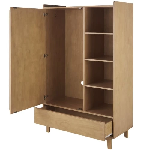 est : simplicité. Elle se compose d’un côté d’une étagère fixe et d’une barre de penderie, de l’autre de 3 étagères fixes. Ce dressing 1 porte battante 1 tiroir offre tout l’espace de rangement nécessaire dans la chambre d’un enfant.