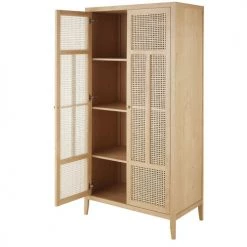 Portes : panneaux de fibres de moyenne densitĂ© coloris blanc, renforts en hĂȘtre et cannage en rotin tressĂ©