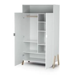 2 barres de penderie en pin, 2 étagères fixes et 2 étagères amovibles