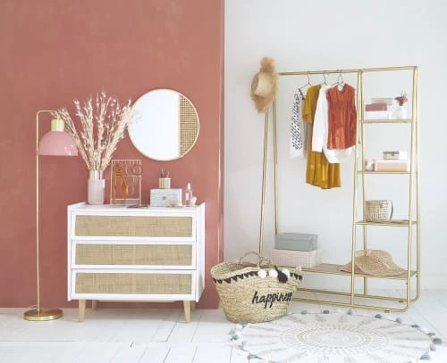Le portant en sapin et métal coloris laiton YSEE trouvera-t-il sa place dans la chambre de votre enfant ? Plein d’élégance, ce meuble saura se rendre indispensable au quotidien. D’un côté, vêtements pliés et de l’autre, des cintres permettront de suspendre manteaux, vestes et robes. Grâce à l’étagère située au bas de ce portant, les chaussures pourront également y être rangées. Difficile de lui résister !