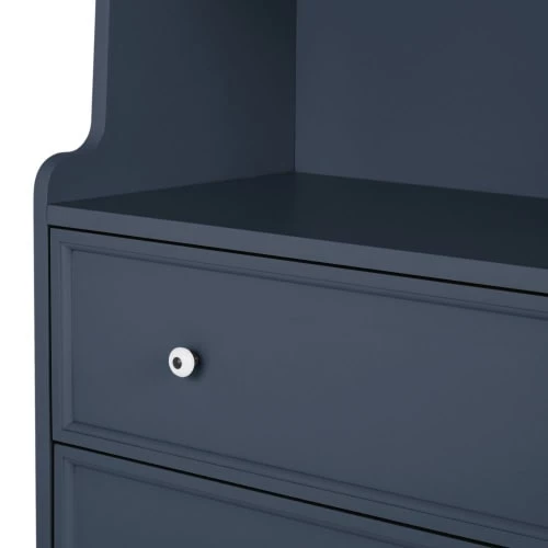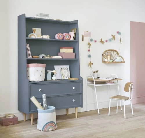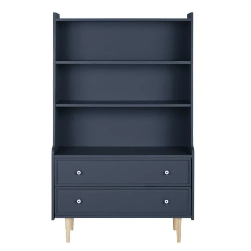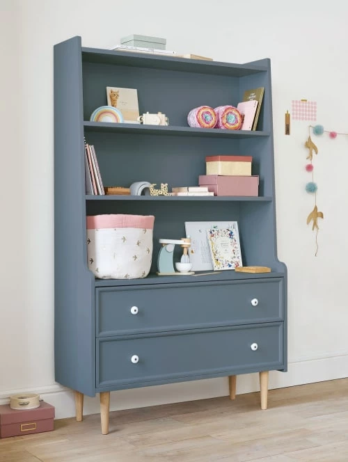 Avec son look vintage et sa couleur intemporelle, la bibliothèque 2 tiroirs bleu nuit grisé ANTWERP apportera un vent de fraîcheur dans la chambre de votre enfant. Dotée de 2 tiroirs en partie basse et de 3 étagères en partie haute, cette bibliothèque offrira un beau volume de rangement pour exposer des livres, des souvenirs ou de beaux objets de déco. Elle saura rapidement conquérir le cœur des enfants comme des parents !