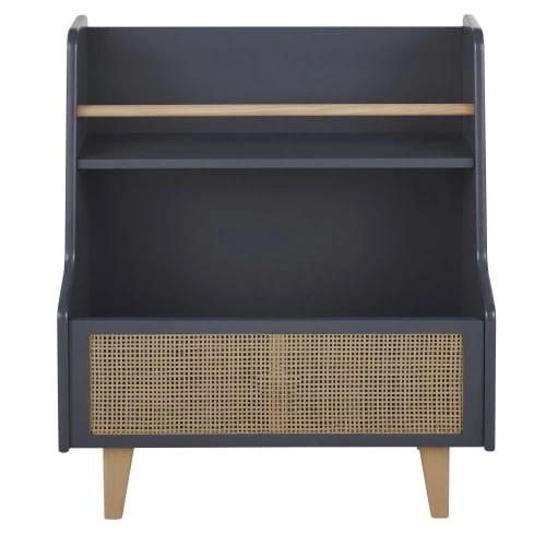 Façade compartiment rangement : cadre en panneaux de fibres de moyenne densité et rotin tressé