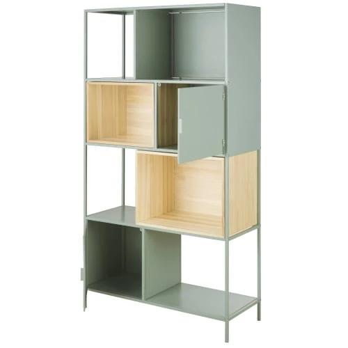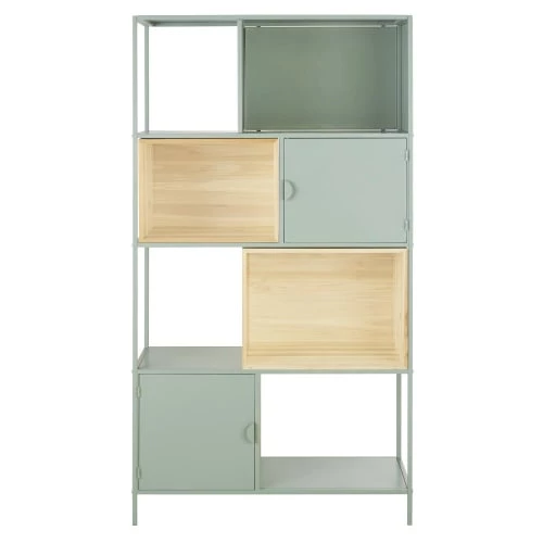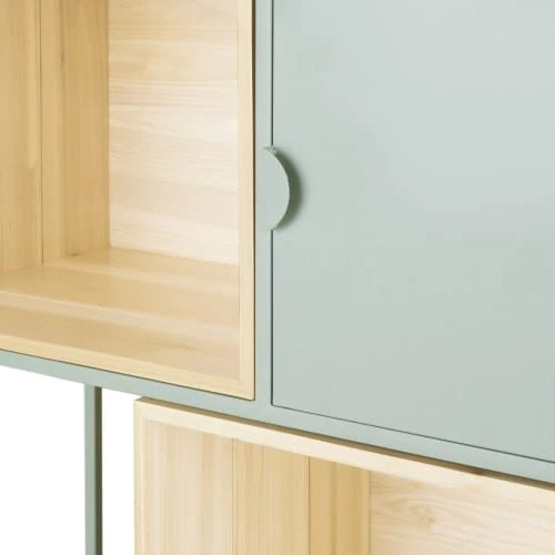 Etagères, côtés et fonds : panneaux de fibres de moyenne densité, peinture et vernis nitrocellulosique, coloris vert