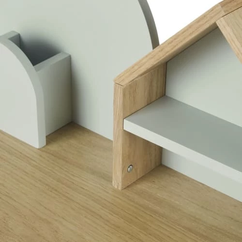 Pour un espace de travail mignon et optimal, optez pour le set bureau et chaise coloris vert et naturel ORESTAD. Ce petit bureau taille enfant original en forme de petite maison, est équipé de rangements sur le plateau et d’un pot à crayon. Il est optimal pour ceux qui sont prêts à faire parler leur créativité ! Son côté pratique : l’assise taille enfant qui accompagne le bureau. L’ensemble vert et coloris bois ira avec tous les styles de déco et vous pourrez facilement l’installer dans toute chambre d’enfant.