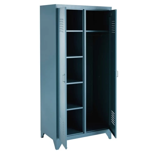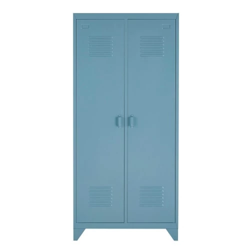 Une vague de fraîcheur inonde la chambre à coucher grâce au dressing 2 portes en métal bleu gris LOFT. Avec son style industriel et son look tendance, cette armoire en métal se fondra aussi bien dans la chambre des parents que dans celle des ados. Les deux portes de cette armoire dressing renferment une partie penderie et une partie rangement composée de quatre étagères. Pour une chambre d’ado esprit loft, craquez pour une déco murale fun !