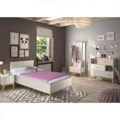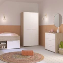 Calicosy Armoires Enfant Armoire 2 Portes Avec Penderies Et LingĂšre L90 Cm – DĂ©cor Bois Blanc