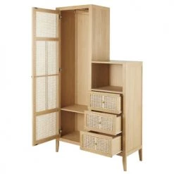 Maisons Du Monde Armoires Enfant Armoire Asymétrique 1 Porte 3 Tiroirs Cannage En Rotin Beige