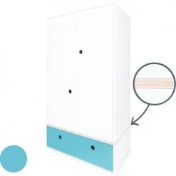 Wookids Armoires Enfant Armoire 2 Portes Façade Tiroir Bleu Ciel