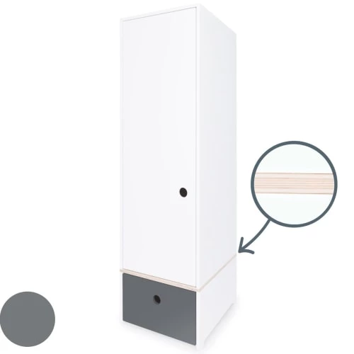 L’armoire enfant 1 porte COLORFLEX est équipée d’une grande porte et d’un tiroir, séparés par une planche de contreplaqué de bouleau. Le système de fermeture “Soft Close”, doux et silencieux, assure un maximum de confort et de sécurité.