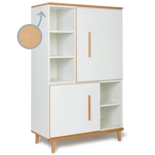 Grâce à ses 5 niches situées sur le côté qui peuvent accueillir des cubes rangement en bois massif (vendus séparément), elle est très fonctionnelle ! De plus, le système de fermeture “Soft Close”, doux et silencieux, assure un maximum de confort et de sécurité.