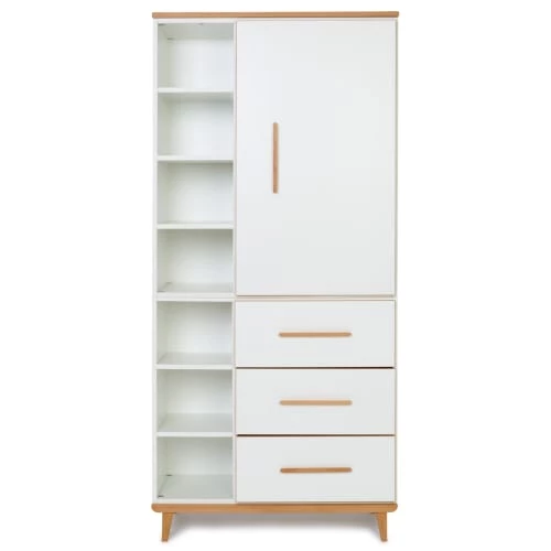 Grâce à ses 7 niches qui peuvent accueillir des cubes de rangement en bois massif (vendus séparément), sa tringle à vêtements coulissante, sa grande étagère et ses 3 tiroirs, elle est très fonctionnelle ! De plus, le système de fermeture “Soft Close”, doux et silencieux, assure un maximum de confort et de sécurité.