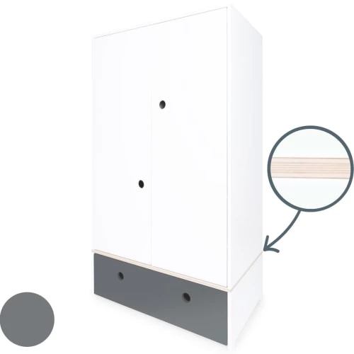 L’armoire enfant 2 portes COLORFLEX est équipée de deux grandes portes et d’un tiroir, séparés par une planche de contreplaqué de bouleau. Le système de fermeture “Soft Close”, doux et silencieux, assure un maximum de confort et de sécurité.