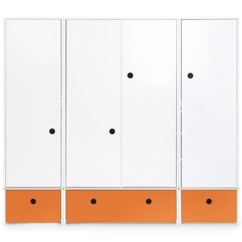 L’armoire enfant 4 portes COLORFLEX est équipée de 4 grandes portes et de 3 tiroirs, séparés par une planche de contreplaqué de bouleau. Le système de fermeture “Soft Close”, doux et silencieux, assure un maximum de confort et de sécurité.